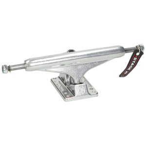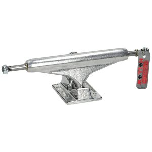 FeaturesTensor skateboard trucksMag Light SeriesAll-terrain skateboard trucksHigher trucks provide more space between deck and wheelsLess wheelbitesImproved geometry for better reaction speedSuper light and strong magnesiumHollow kingpin and truckLow kingpin to avoid hang-upsTruck width: 8″ (202 mm)Hanger width: 133 mm (5.25″)Height: 55 mm (high)Weight: 257 g