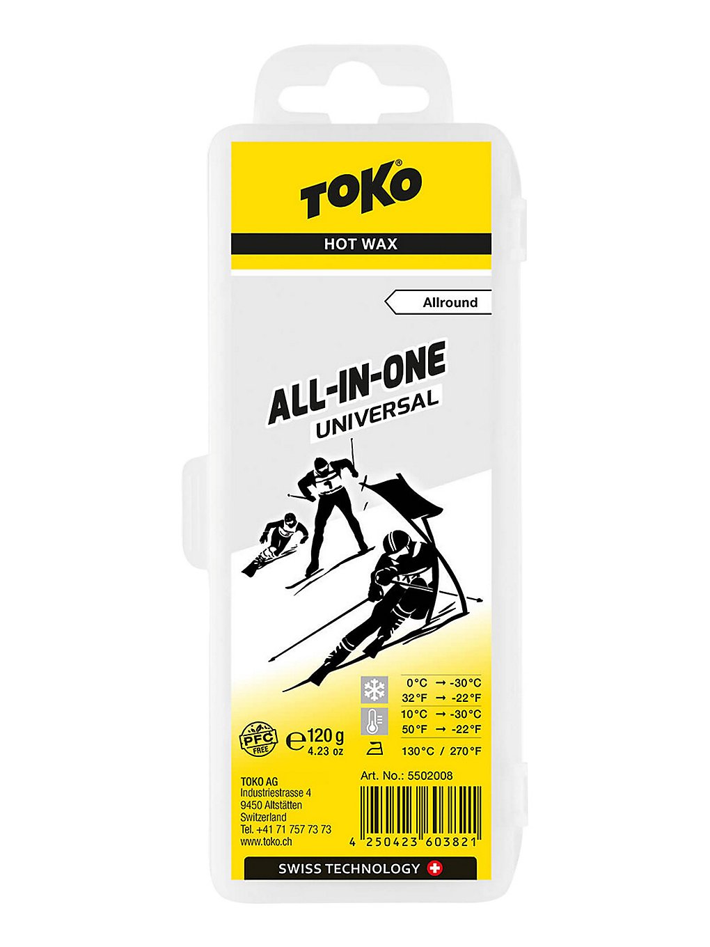 FeaturesToko Universal Hot WaxContent: 120 gSnow Temperature range: 0°C / -30°C (32 °F / – 22 °F)Suitable for all types of snow and snow temperaturesGood gliding propertiesPrevents the base from drying outBiodegradableProtects against contamination and oxidation during storage of ski materialResealable Waxcase